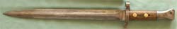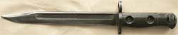 Bodák s plochou čepelí s falešným ostřím. Hlavice s čistícím otvorem a příčka železné, střenky dřevěné připevněné dvěma šrouby s prořízlými hlavami. Stiskátko je ovládáno vinutou pružinou zajištěnou maticí stiskátka. Pochva kožená se železným kováním. Na bodáku se nachází značka vládnoucího panovníka G.R.I. s korunou - Georgius Rex Imperator (King George VI., 1937-1952), označení vzoru Mk.III, datum výroby 5´45 (květen 1945), logo výrobce - R.F.I. - Rifle Factory Ishapore a kontrolní značka zbrojovky Ishapor - IS 212. Na příčce jsou vyražena písmena DP (Drill purpose), což znamená, že byl bodák určen pro výcvik. Od modelu Mk.II. se liší pouze tvarem falešného ostří. |